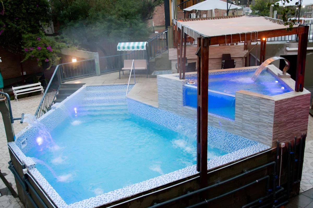 Termas deRíoHondoにあるホテルリオダルスは、絵のように美しいテラスと魅力的なバーベキューエリアを備えた豪華な宿泊施設を提供しています。ゲストは、プロパティの説明と写真の正確性を高く評価しています。この魅力的な施設は、敷地内にプライベートな駐車スペースを誇っており、訪問者に利便性を確保しています。温かい歓迎を提供するホテルには、敷地全体で無料のWi-Fiカバレッジが含まれており、滞在中の接続性が向上しています。家族はファミリールームの存在下で快適さを見つけることができ、若い旅行者に歓迎される環境を作り出します。リゾートでの注目すべき機能は、温水スプリングバスで、長い数日間の探索の後に若返りの体験を提供します。さらに、ホテルには屋外スイミングプールとスパのようなホットタブがあり、近くのアトラクションを探索するのに1日過ごした後、巻き戻すのに最適です。