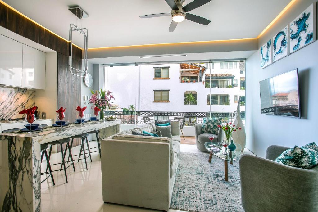 Pier 57 Modern Luxury PVの最高の屋上のアパートは、屋外スイミングプール、無料のWi-Fi、ビーチフロントアクセス、ファミリールーム、非喫煙室、フィットネスセンター、24時間フロントデスク、バー、設備の整ったキッチンを提供しています。