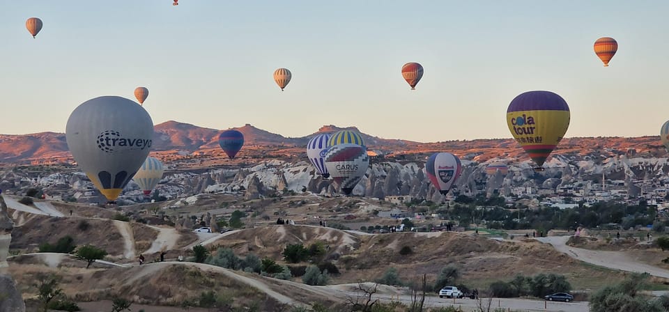 リフトオフの前に、初期オリエンテーションと機器の準備に十分な時間が割り当てられます。飛行中に、私たちのプロのパイロットは、ラブバレー、ローズバレー、カヴusinバレー、パサバグオープンエア博物館、ゴレメオープンエアミュージアム、妖精の煙突の中に囲まれた洞窟など、カッパドキア内の多様な風景の息をのむような景色を披露します。この空中ツアーは、これらの自然な驚異の忘れられない探求を約束します。